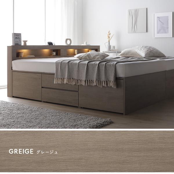 照明宮付 チェスト ベッド 通常丈ワイドキング200 S ホワイト ベッドフレームのみ 収納ベッド すのこ 大容量 収納付 コンセント付 組立品