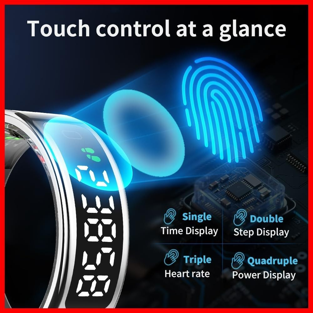 【曲面ディスプレイ搭載スマートリング |一目でわかるデータ】業界初の0.87インチマイクロカーブタッチスクリーンを搭載し、スマートフォンに頼ることなく、リアルタイムの健康指標(歩数、心拍数、SpO2)を確認できます。手首を上げるだけで、重要なデータが常に表示されます。
