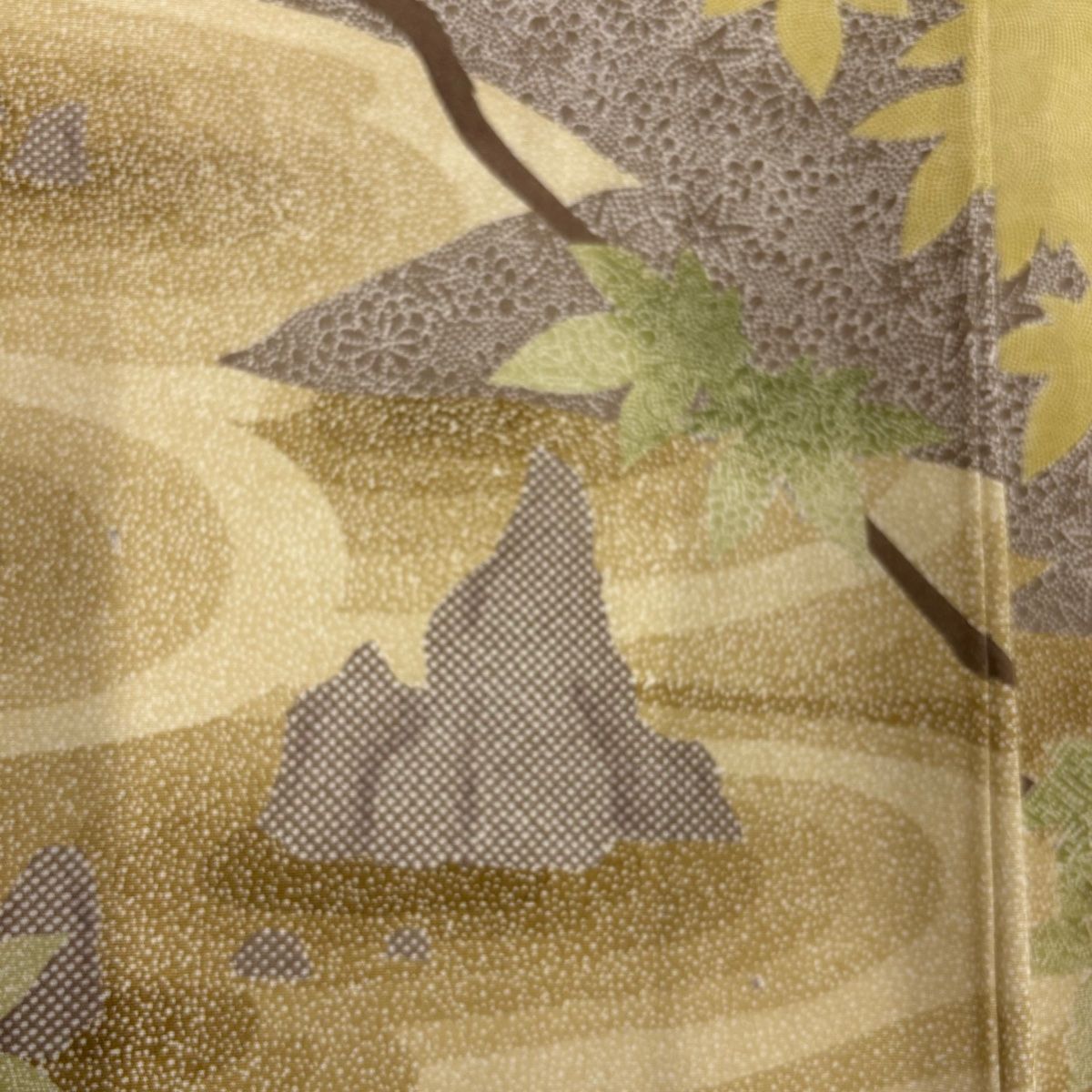 付下げ 身丈162.5 cm 裄丈65 M 袷 落款 枯山水 楓 からし色 正絹 秀品 一つ紋