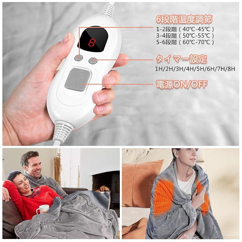 【様々なシーンに活躍】冬には電気ブランケットとして、春と秋には普通の毛布としてご利用いただけます。電熱毛布は膝掛け、肩掛け、ひざ掛け、敷きとして使用可能で、寒い季節の休憩、家で映画を見る場合にも最適。就寝時だけでなく、普段はひざ掛けなどとして使用できます。昼寝のために腰を温めるベッド毛布としても使えます。冬キャンプ、キャンプ、車、家、オフィスなどに最適です。