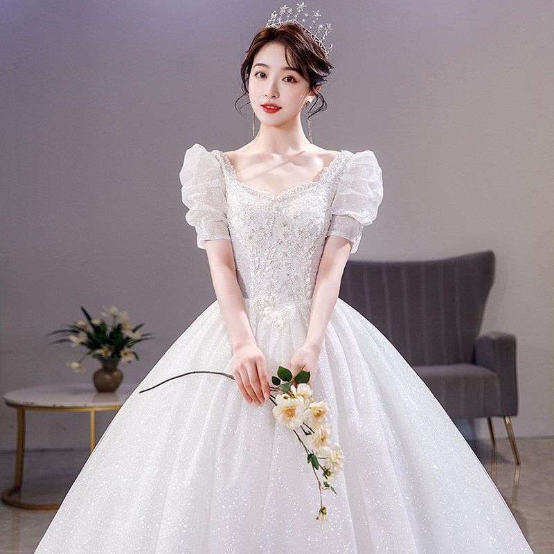 法式 軽婚纱 ロングトレーン ウエディングドレス 主婚纱 夏季 新娘 小柄向け~大きいサイズ対応-10.14
