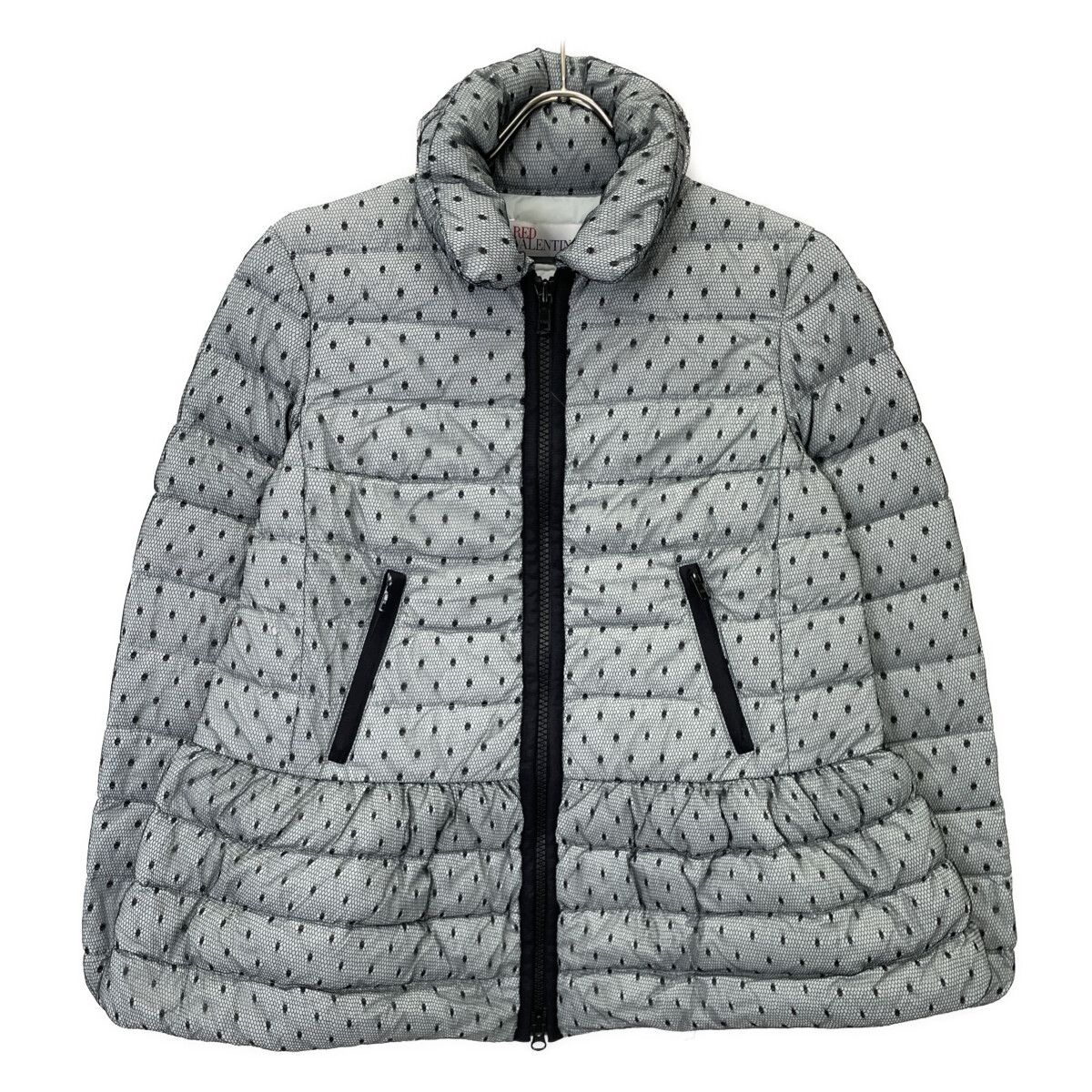 RED レッドヴァレンチノ グレー×ブラック メッシュドット ショートダウンジャケット 40