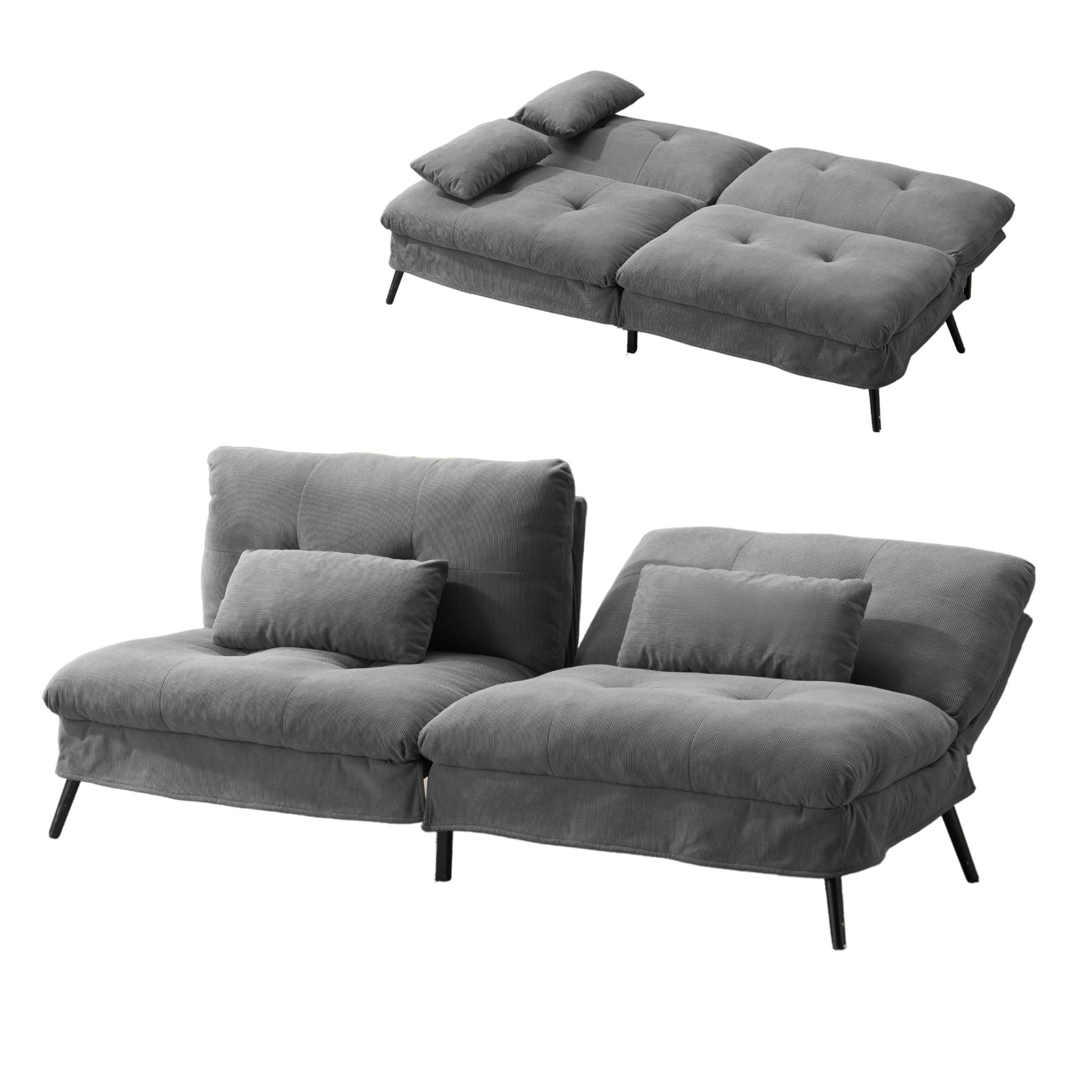 【柔軟な背もたれ調整】背もたれには 6 段階の調整機能があり、さまざまな使用ニーズに合わせて角度を正確に調整できます。背もたれを最も低い位置にすると、ソファは完全にベッドに変身し、一時的にお客様を泊める場合や、快適に横になってドラマを見たり本を読んだりする場合など、どんな状況にも簡単に対応でき、ソファとベッドの二重機能を実現し、空間の利用効率を大幅に向上させます。
