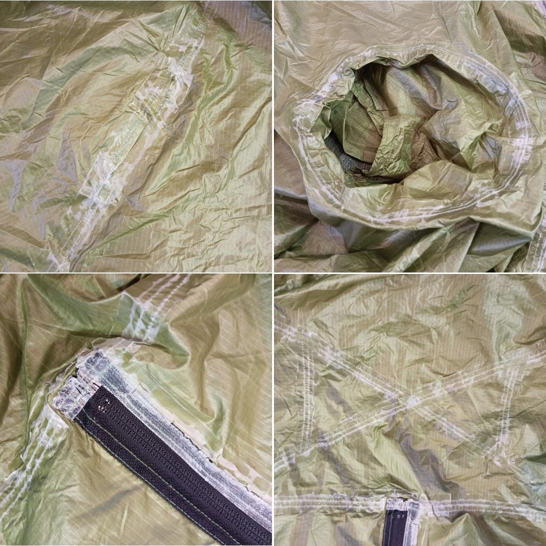 インナーテントの内部四隅にシームテープ剥がれが見られます(写真参照)。