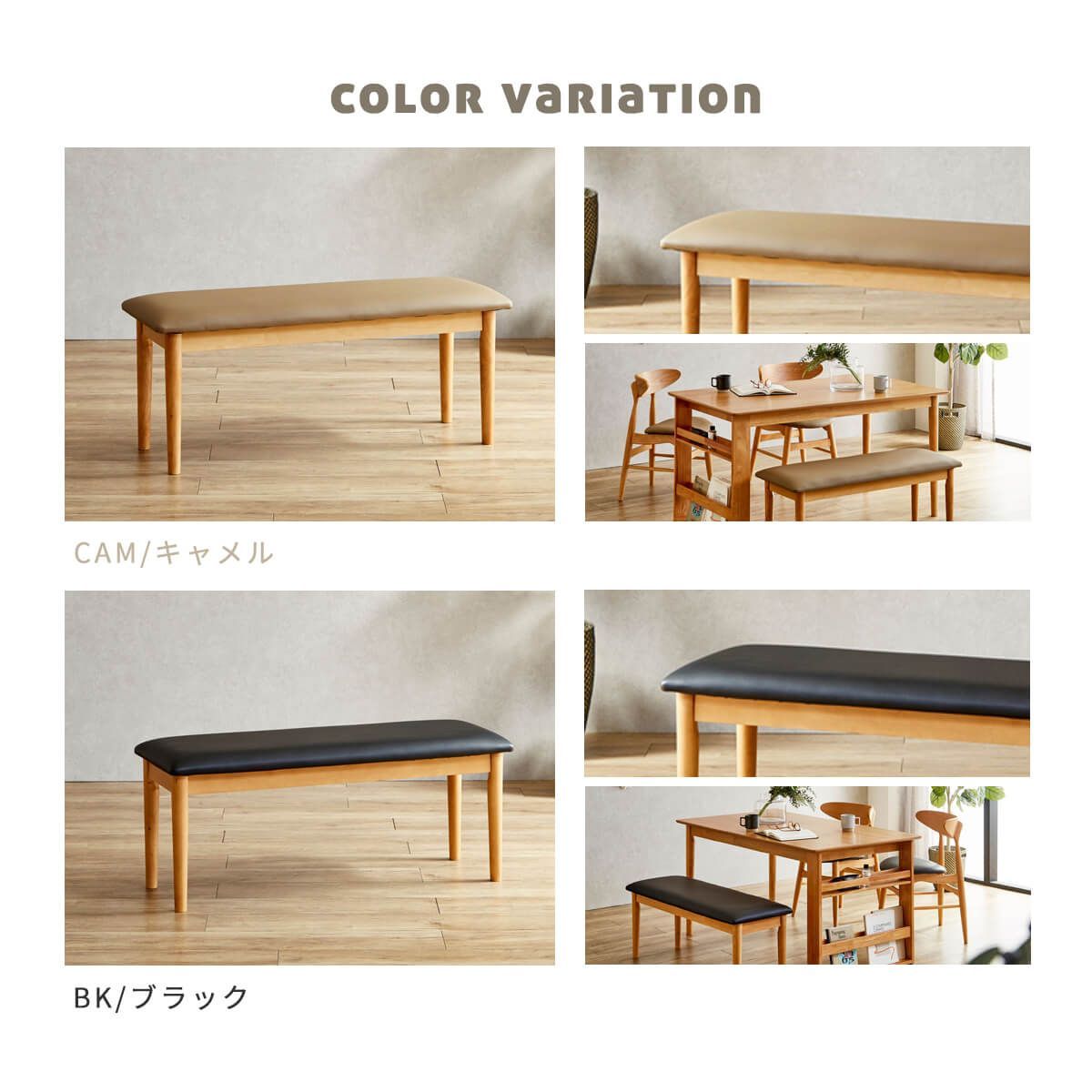 ダイニングベンチ 2人掛け 食卓 クッション ゆったり 快適 リラックス 北欧 ナチュラル ブラック キャメル くすみ おしゃれ シンプル 丸脚 木脚 スツール 幅105 商 小 才 3