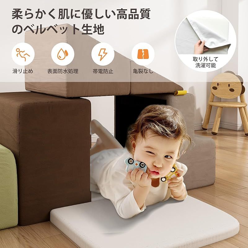 【柔らかな素材】ブロック内部には高密度のフォームが使われており、優れたサポート力を提供します。外側は肌に優しい柔らかい生地で覆われており、弾力性、安定性、軽さを兼ね備えています。これにより、子どもたちの運動スキルやバランス感覚の発達を助けます。