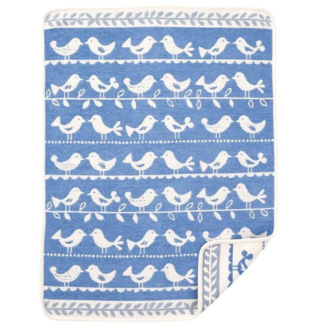 KLIPPAN シュニールコットンミニブランケット birds blue