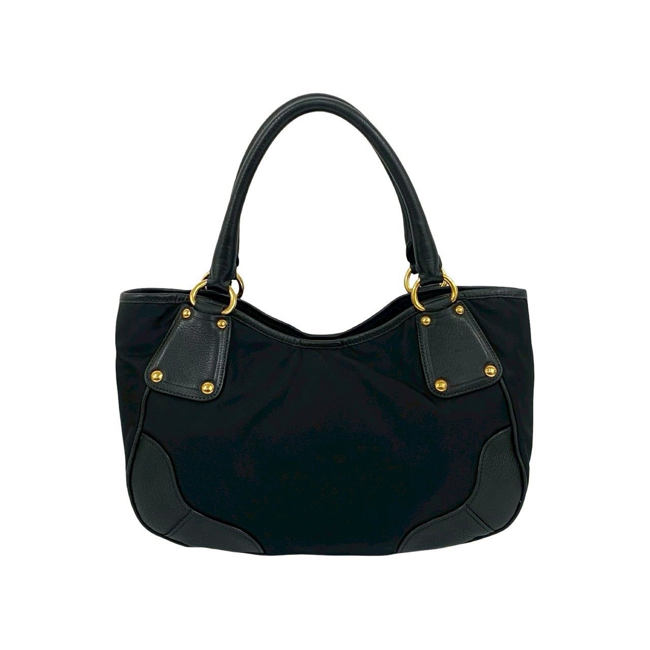PRADA プラダ ロゴ ゴールド 金具 ヴィッテロ レザー 本革 テスート ナイロン トートバッグ ハンドバッグ ブラック 黒 87702