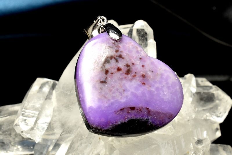 1点物 シルバー925 高発色 スギライト 杉石 22 x 25 mm ハート ペンダントトップ パワーストーン 天然石 _PC 6293