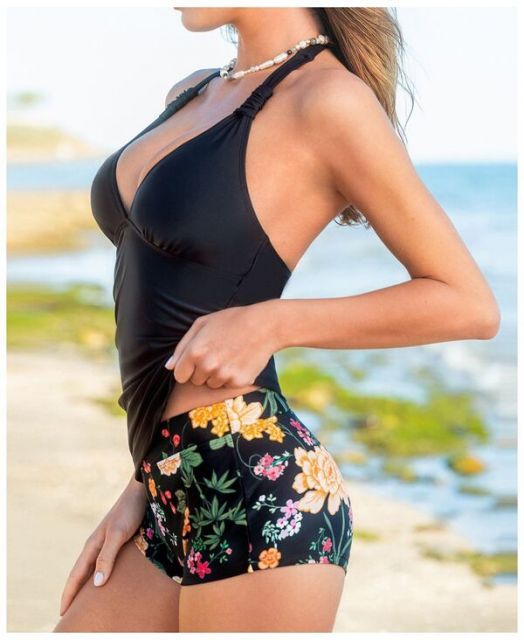 Women'sHighWaistedHalterVNeckShortsTankiniSets