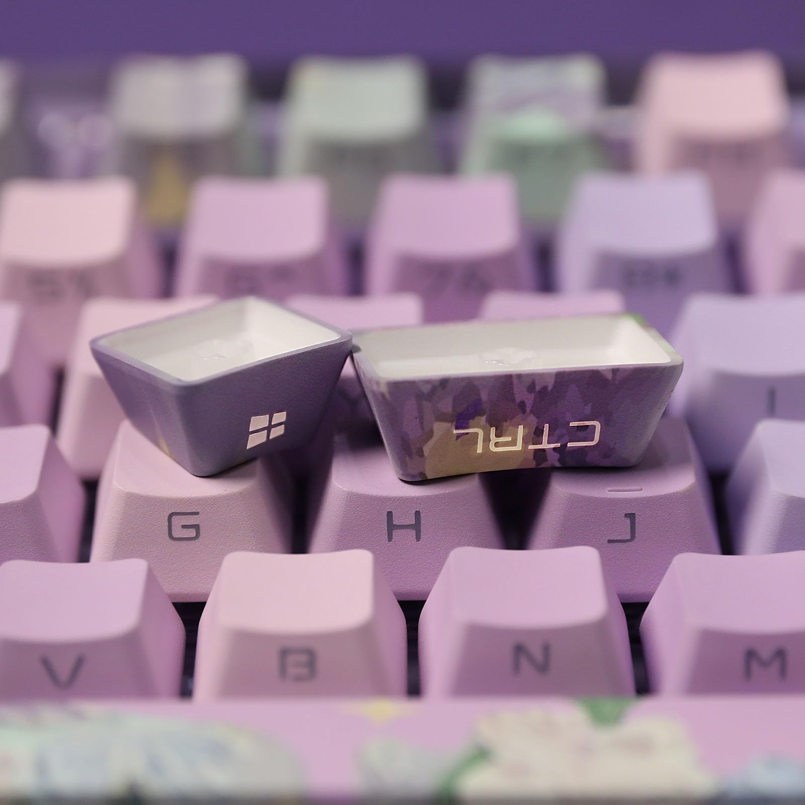 【サイドプリント・スパークリングデザイン】キーキャップには独自のサイドプリント技術を採用しています。従来のデザインとは異なり、フォントは上部を支配するのではなく、エレガントにサイドに配置され、洗練と神秘の要素を加えています。この巧みなデザインは、明瞭さと視認性を確保するだけでなく、奥行きを与え、すべてのキーストロークを没入感のあるものにします。