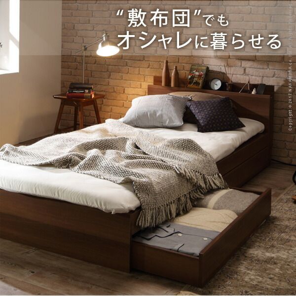 ベッド 収納 セミダブル ベッドフレーム 敷布団でも使えるベッド 〔アレン〕 ベッドフレームのみ ロースタイル フロアベッド ベッド下収納 引き出し 木目 木製 宮付き 頑丈 コンセント シンプル おしゃれ 一人暮らし