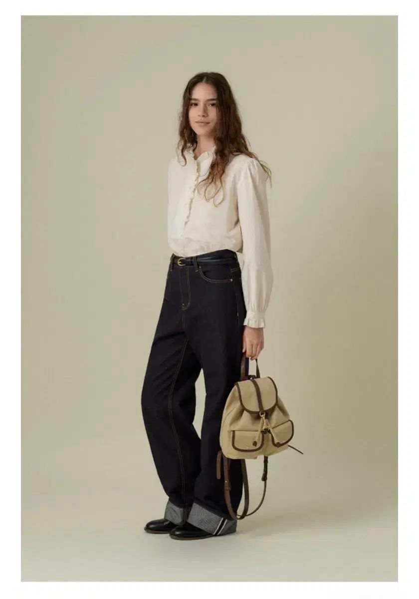 マンゴープルオーバーフリース セルビッジデニム Mサイズです。濃い色味のデニムで、ロールアップして着るとさらに可愛いです。足が長く見えるフィットです。