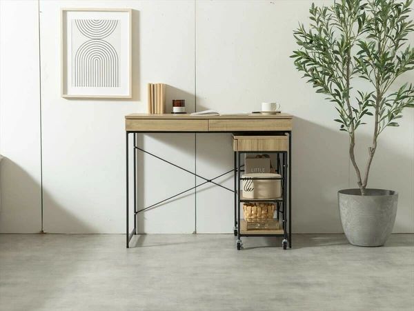 コンパクトデザインながら、多機能で使いやすい『Amitie(アミティエ)』デスク&ラックセット。ワンルームなど限られた空間にも気軽に置けるサイズ感に、A4サイズも入る引き出し、デスク下にすっぽり収まるキャスター付きラックなど、収納力も抜群。コンセント&USBポート付きで、パソコンやスマホの充電はもちろん、キッチンでの作業テーブルや、子供部屋での勉強机としてなど、色々なシーンで活用できます。