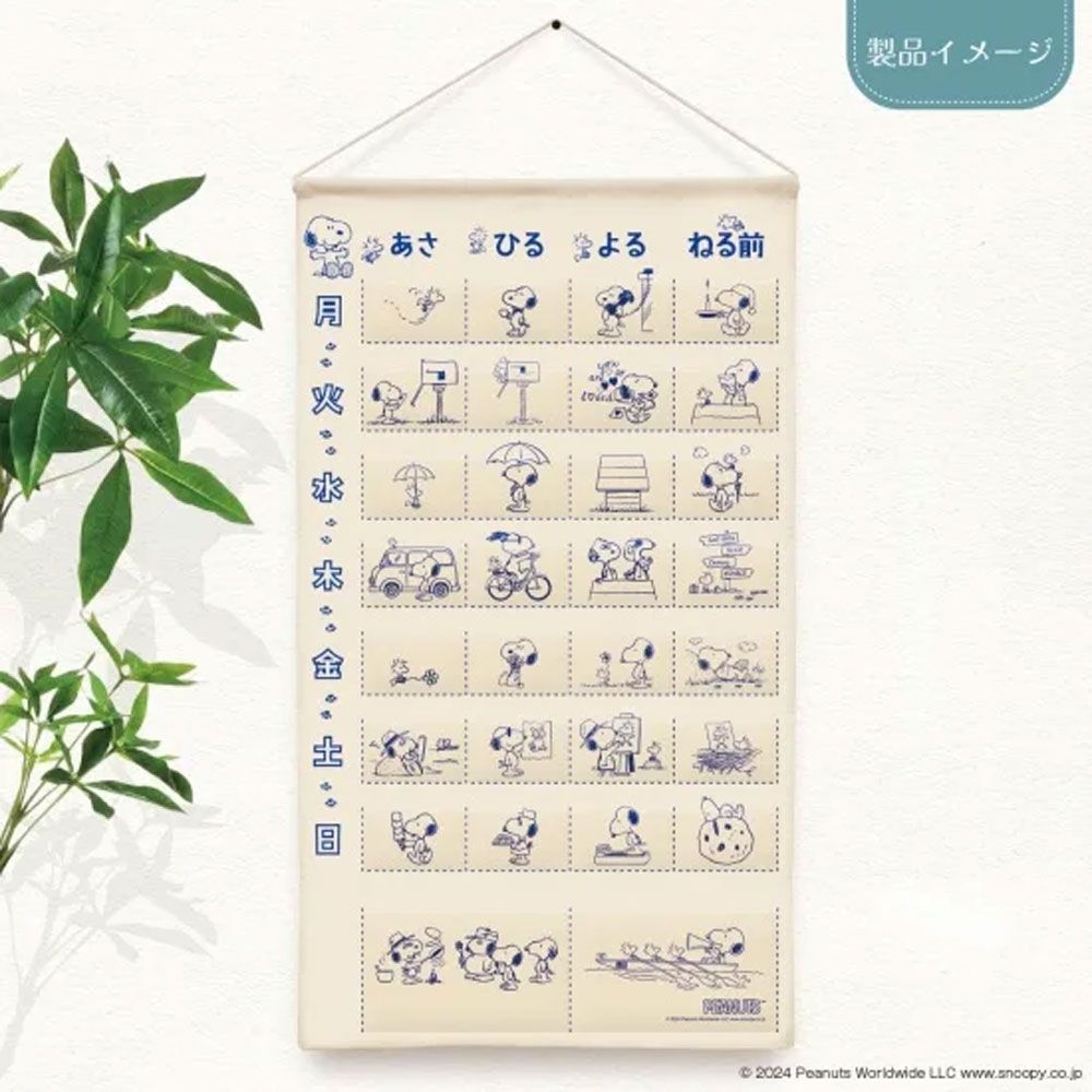 スヌーピーたちのデザインでインテリアにも馴染みやすいおくすりカレンダーです。