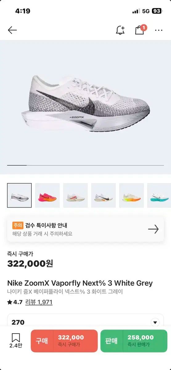 270 NIKE ズームX ヴェイパーフライ ネクスト 3 白 グレー