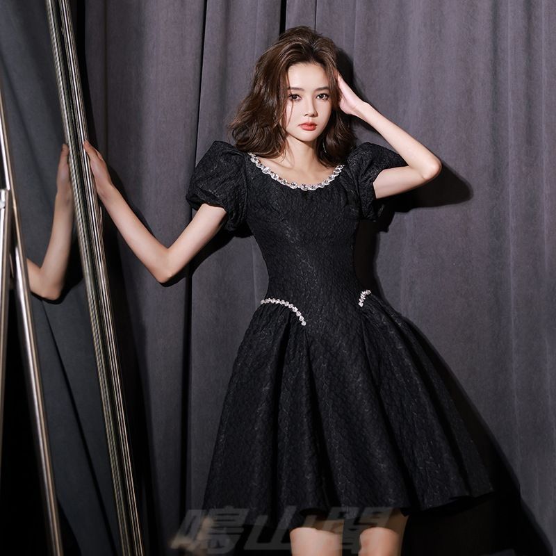 2025年新作、夏にぴったりなブラックのショートドレスです。シンプルで着回しやすく、誕生日会・女子会・パーティーから日常のお出かけまで幅広く活躍。高腰×Aラインシルエットで自然にスタイルアップ。バックファスナー付きで着脱も簡単です。