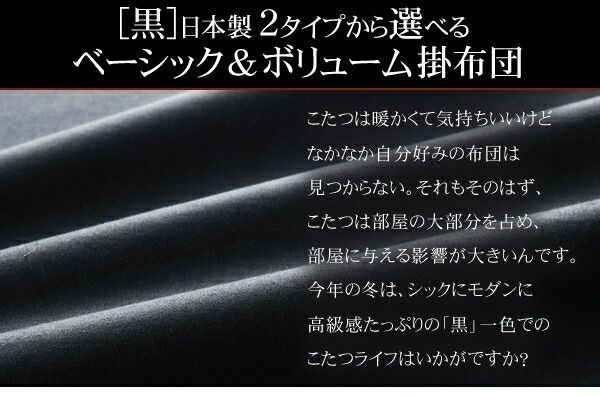 「黒」日本製2タイプから選べるベーシック&ボリュームこたつ掛布団シックにモダンに、高級感に溢れる