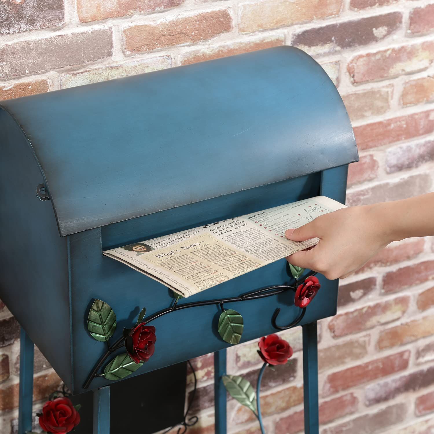 不二貿易 メールボックス 郵便受け ポスト 幅40.5×奥行33×高さ102cm ブルー 横型 スチール 棚付き 黒板付き ローズ 96760