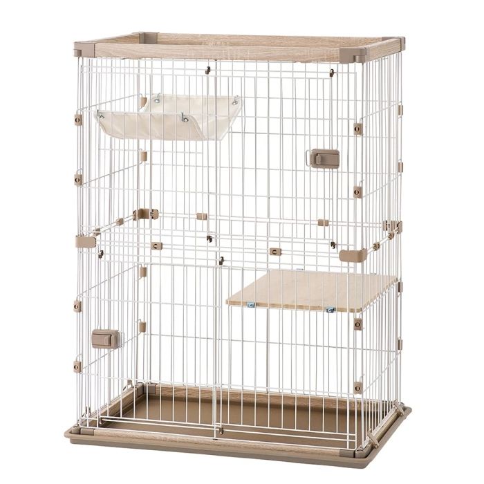 アイリスオーヤマ ウッディキャットケージ2段 PWCR-962 V ライトナチュラル