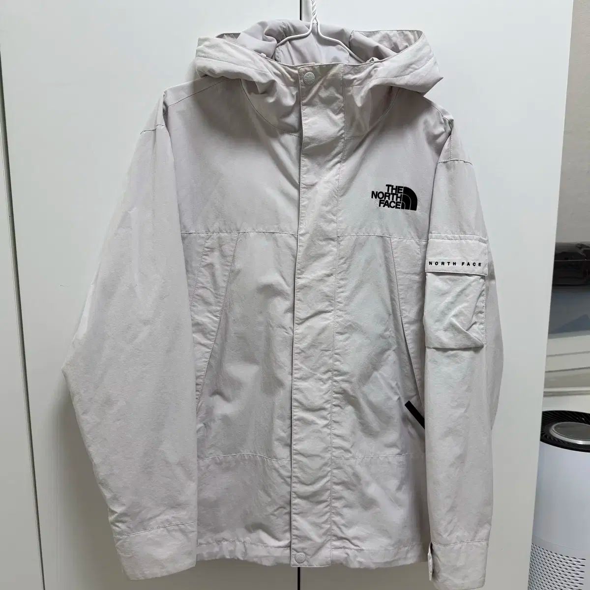 THE NORTH FACE(ザ・ノース・フェイス)の白(ホワイト)ラベルのウィンドブレーカー( 바람막이)ジャケット(ジャケット)です。