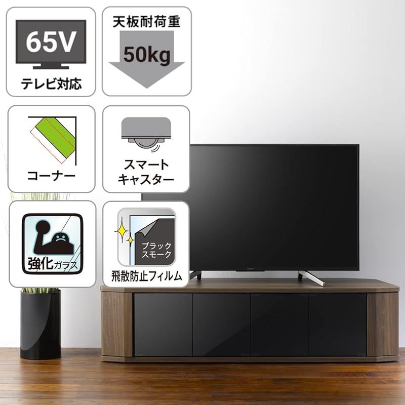 朝日木材加工 テレビ台 RACINE 65型 幅150 cm ブラウン コーナー対応 キャスター付き RCA-1500 AV-CR 1