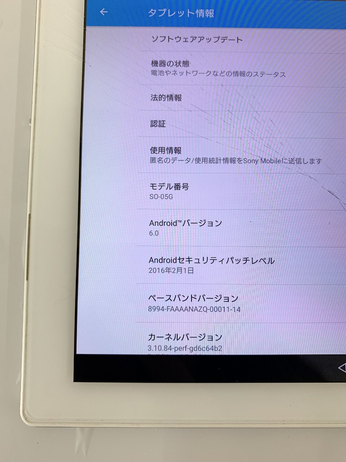 4 み Xperia Z 4 Tablet SO-05 G ホワイト 画面ヒビあり スマホ 1