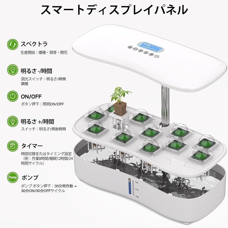 水耕栽培キット LED植物成長ライトとスマートディスプレイを搭載し 簡単に操作できます 自動水循環システムとタイマー機能により 3つの栽培モードが提供され 12種類の植物を栽培できます 栽培キットの高さと照明明るさは 植物の成長段階に応じて調整 これにより