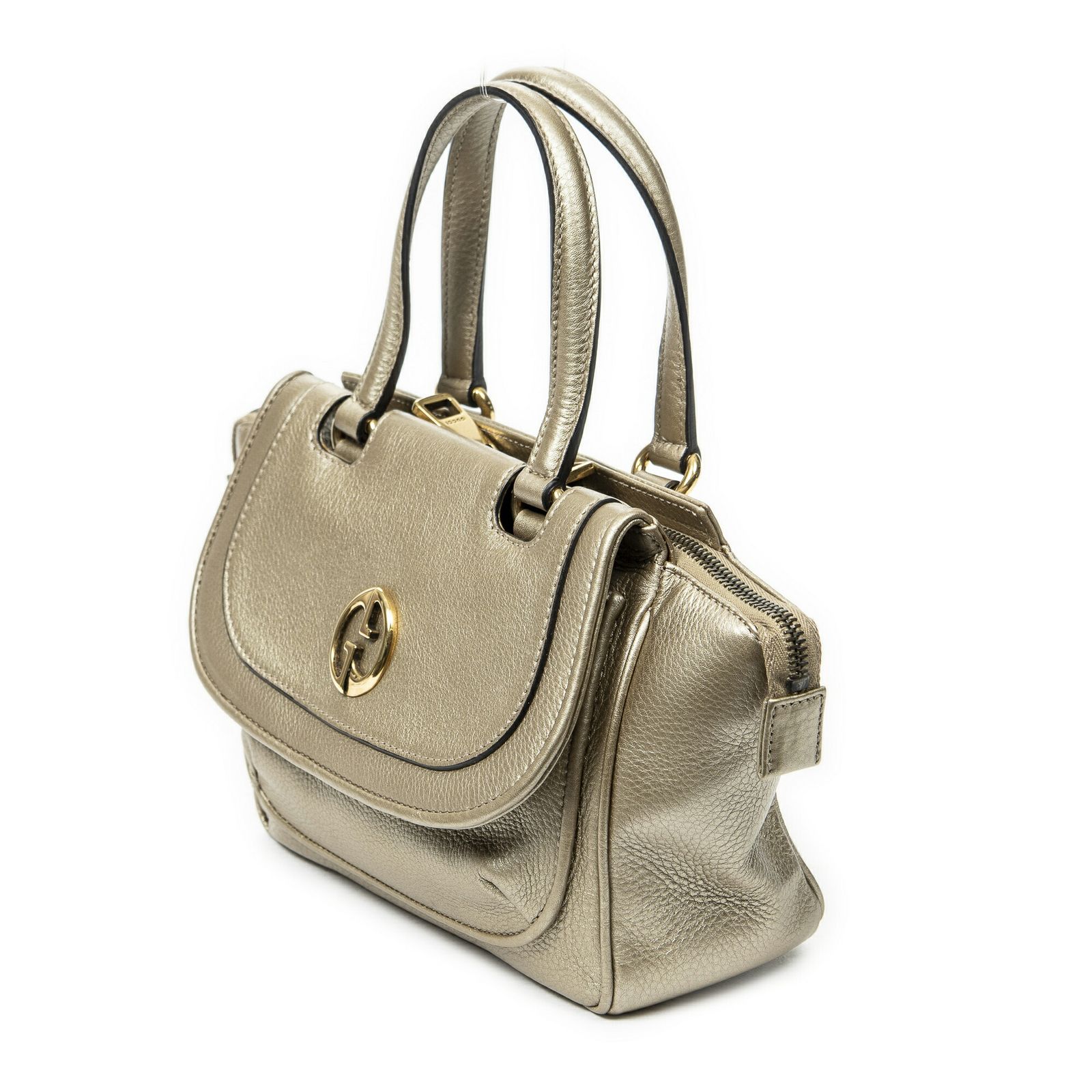GUCCI グッチ小 GG トップハンドル金カーフスキンレザーA