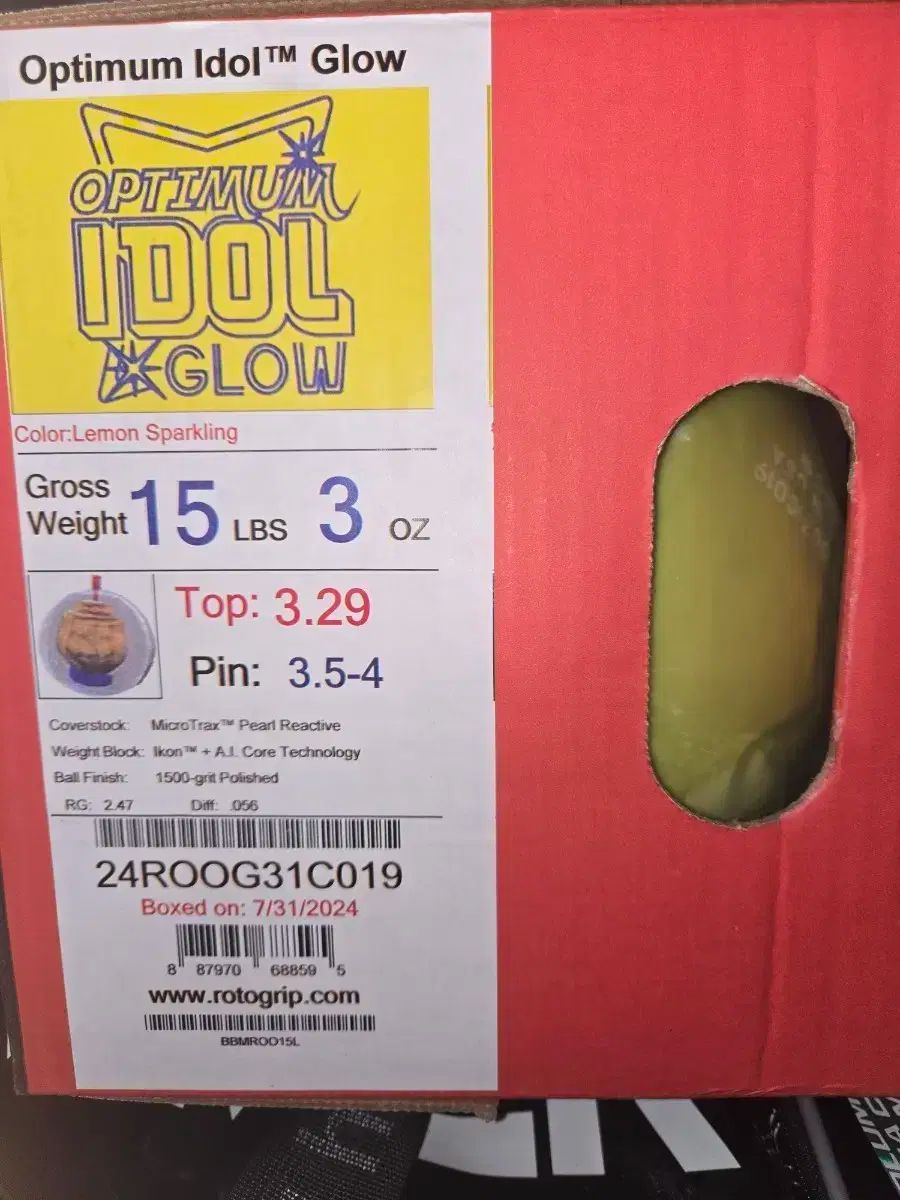 未使用 ローターグリップ オプティマム KPOP アイドル グロー 15ポンド ボーリングボールです。レモン スパークル カラーで、1500-grit polishedで締め切りされました。ボックスに2024年7月31日に包装されたと記載されています。個別コメントなければすぐ安全決済お願いします!