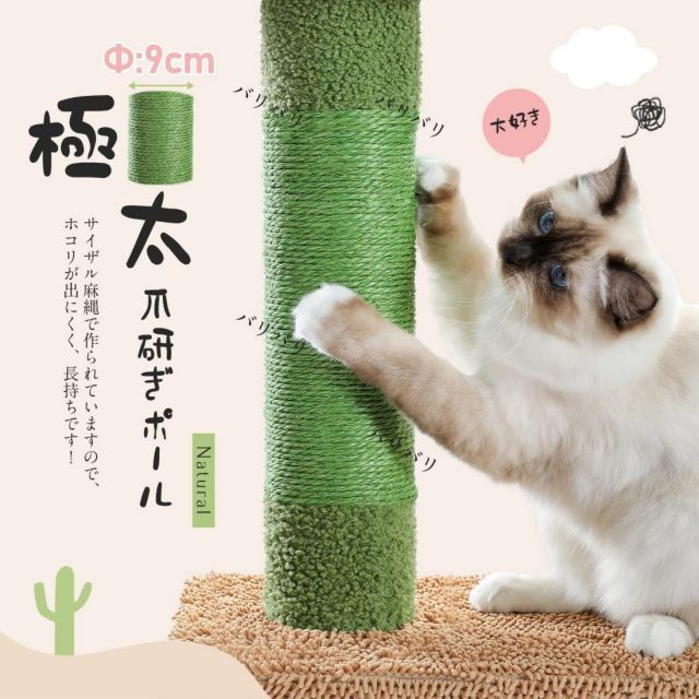 【爪とぎポール】極太爪とぎポール、直径9cm!安定性抜群です!天然サイザル麻紐爪研ぎポールで、長持ちです!(単独購入可能)