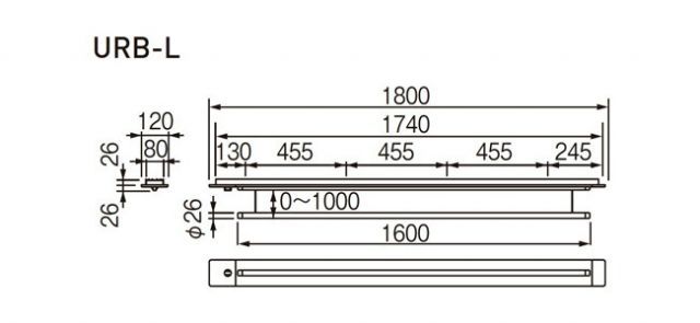 物干し 室内干し 室内用 天井埋込タイプ スカイクリーン UR型 URB-L ホワイト 全長1800×幅120×高さ52 mm 上下1000 荷重目安8 kgf 操作棒 フック付 ロールアップ式 竿 単位 洗濯物干し ハンガー掛け ピンチハンガー ス