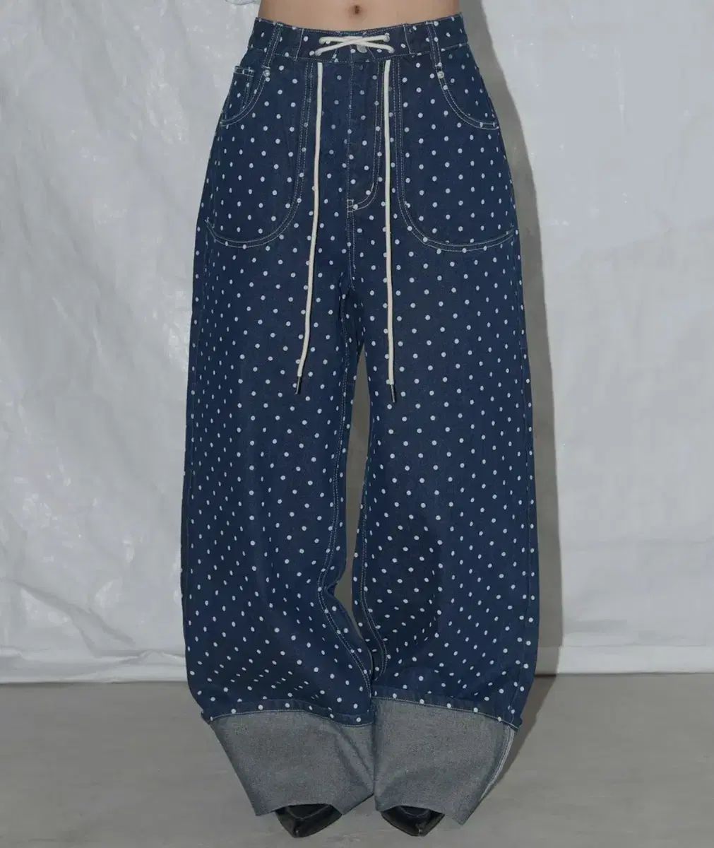 ファンシークラブ シャーリング ドット ロールアップ パンツ 青