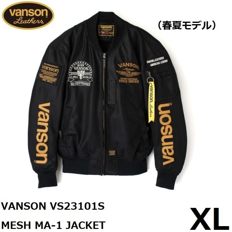 VANSON バンソン メッシュ MA-1 ジャケット ブラック イエロー XLサイズ 着脱防風インナー装備