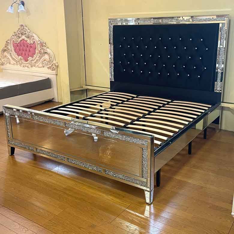 ミラー家具 キングベッド ベッドフレーム 鏡張り ブラック&シルバー