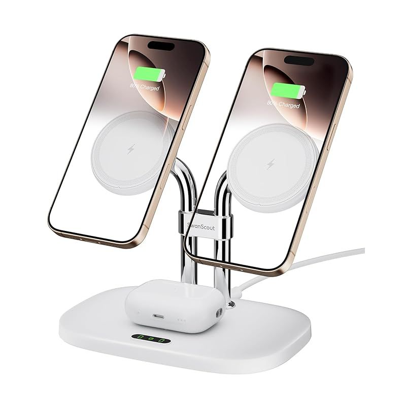 iPhone 16 15に対応ワイヤレス充電器 SwanScout 706 M デュアル mag-safe 充電器 15 14 13 12シリーズ対応 AirPods 4 Pro 2 3対応 ホワイト 0