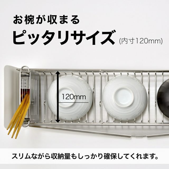 ・たてよこウェーブ搭載。小さな突起でお皿が立ちます。お椀や大皿もすべり知らずでラクラク収納できます。